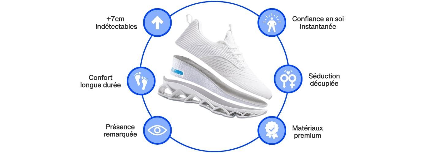 Qaptex vous offre un boost parfaitement calibré de +7cm : votre silhouette est mise en valeur, votre posture améliorée, et vous vous sentez plus sûr de vous — sans jamais paraître excessif ni suspect.